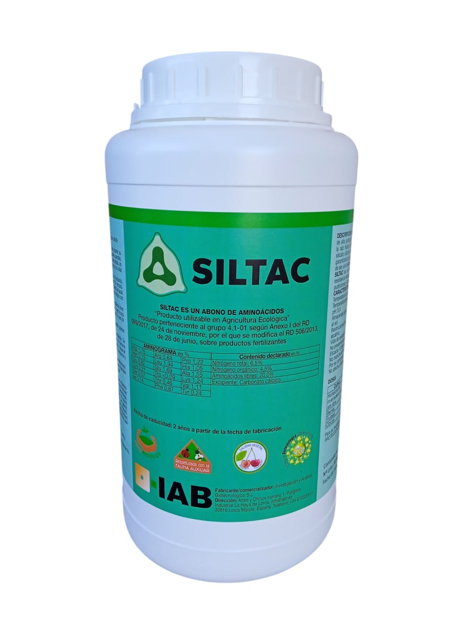 SILTAC contiene un conjugado enzimático procedente de una fermentación simbiótica de Trichoderma asperellum, T. harzianum y T. koningiopsis. Es un fertilizante de aplicación radicular con un alto contenido de aminoácidos libres junto a nitrógeno orgánico y oxido de silicio de origen fósil mineralizado, destinado a obtener raíces sanas y vigorosas. Su especial formulación con silicio, permite crear una zona radicular mucho más aireada y con un mejor nivel de retención de agua. Además, por sus enzimas y metabolitos antagónicos, ayuda a controlar hongos de suelo.